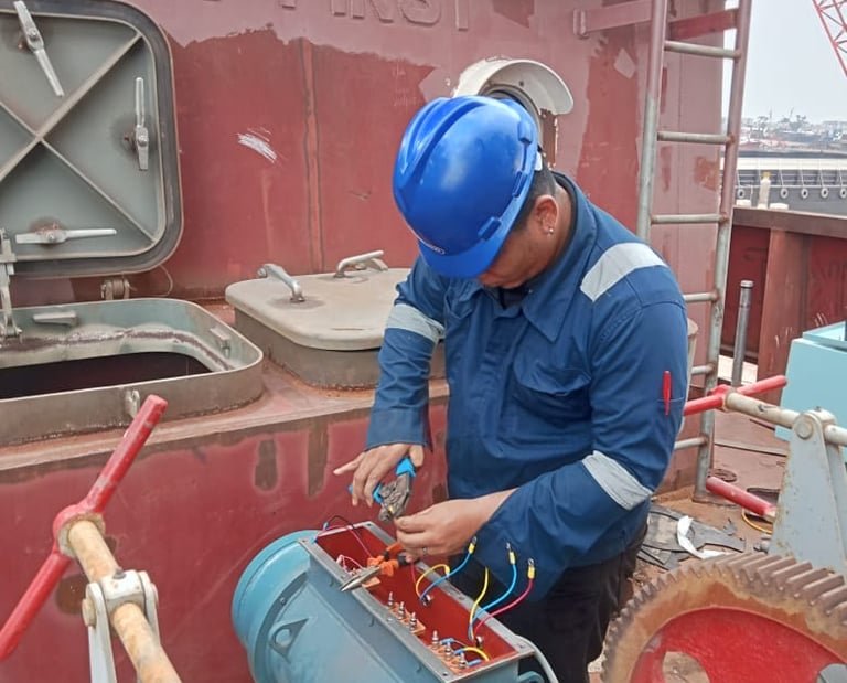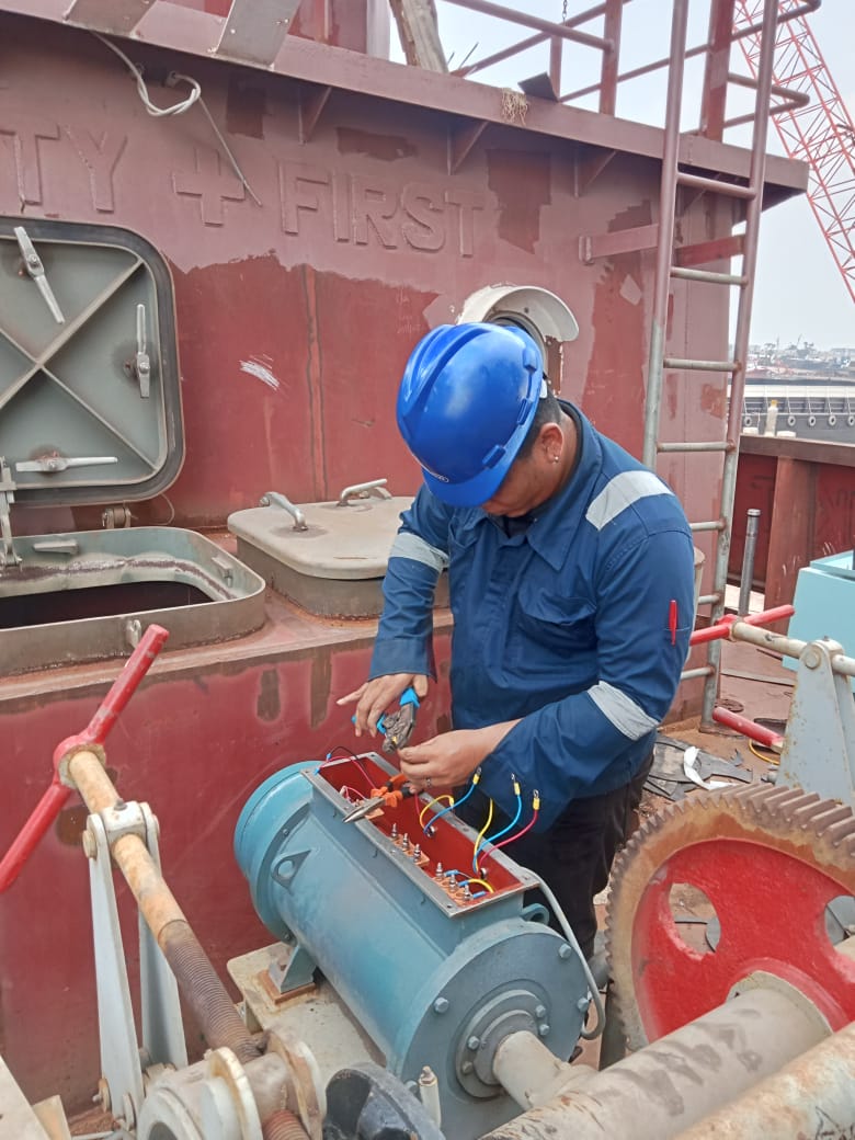 Maintenance of electrical systems on ships is an important activity to ensure all electrical equipment, such as generators, panels, and cables, work safely and optimally. This activity includes routine inspection, cleaning, testing, and repair in case of damage. With good maintenance, the risk of electrical interference can be minimized, the safety of the ship's crew is maintained, and the ship's operational performance remains efficient